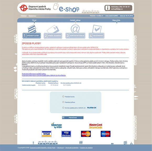 Navigace pod hlavním nadpisem je vám k ničemu. Pokud se začtete, tak u Postupu pro získání el. jízdenky vás to odkáže na stránku opencard.praha.eu. V té chvíli vám dojdou dvě věci: